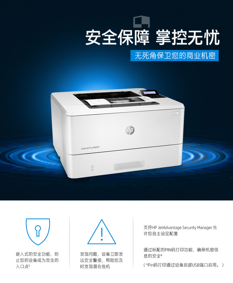 惠普(HP) M405dN专业级激光打印机 多功能一体机 液晶显示屏 自动双面打印 USB