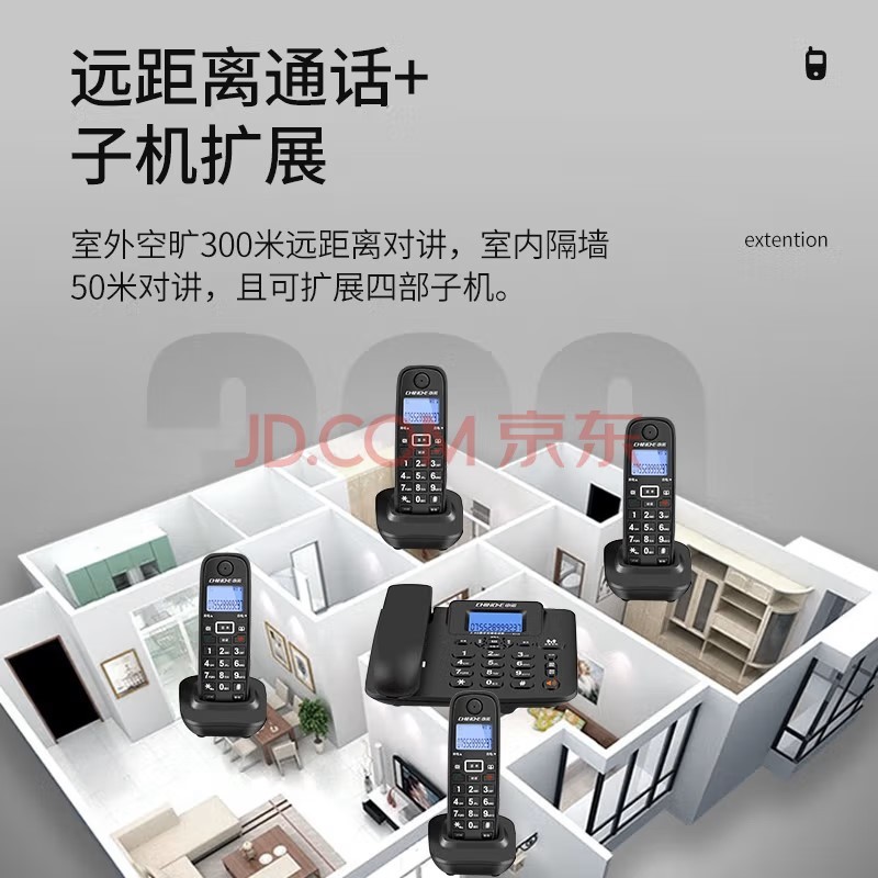 中诺(CHINO-E)W128子母机电话办公固定电话一拖一拖二内线对讲数字无绳无线座机 黑色(一拖四) 单台