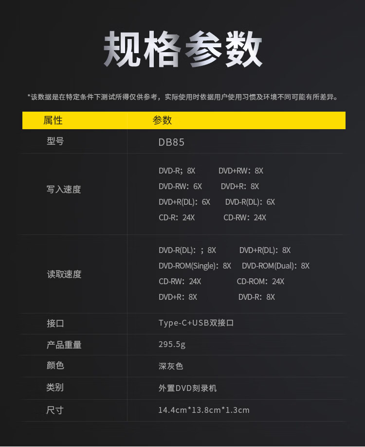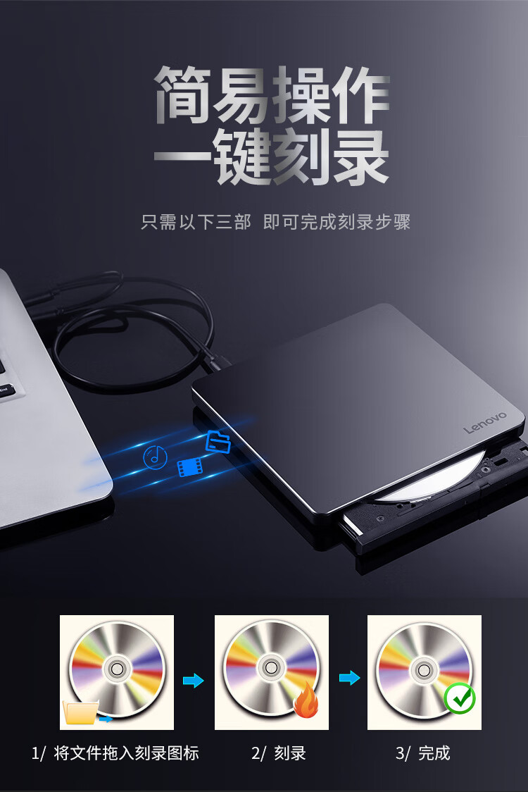 联想/LENOVO DB-85 光驱 铝合金材质 Type-C/USB接口 外置光驱 DVD刻录机
