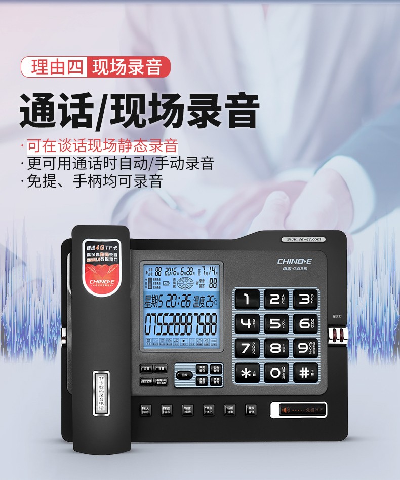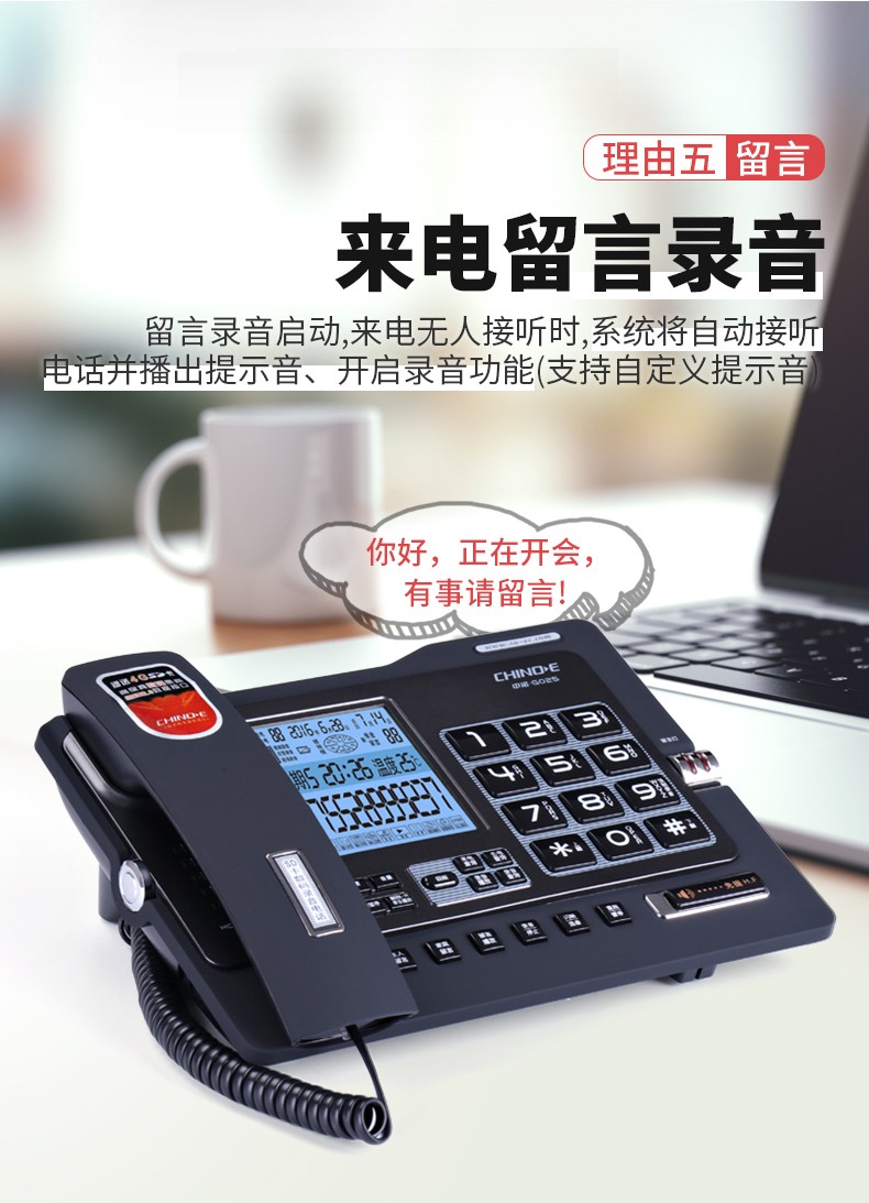中诺/CHINO-E G025 普通电话机 座机可录音480小时支持扩充至32G智能自动录音办公家用固定电话留言黑色