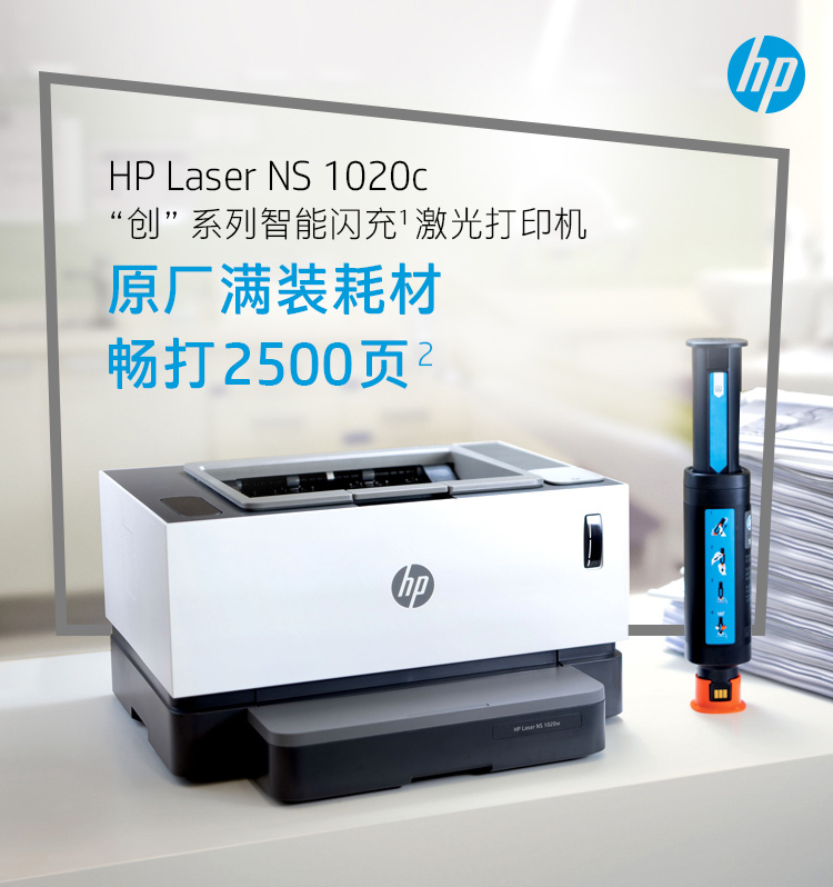 惠普(HP)创系列NS1020c智能闪充大粉仓激光打印机 1020plus升级款半容装 15秒充粉单打成本5分钱
