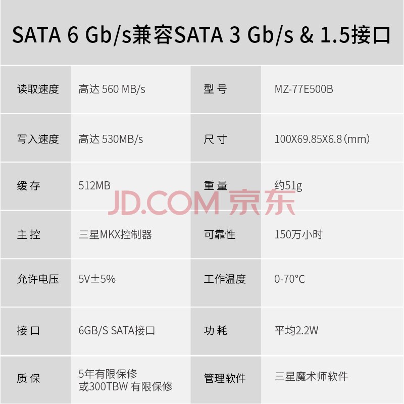 三星(SAMSUNG)500GB SSD固态硬盘 SATA3.0接口 870 EVO