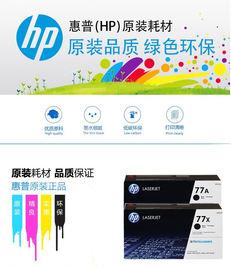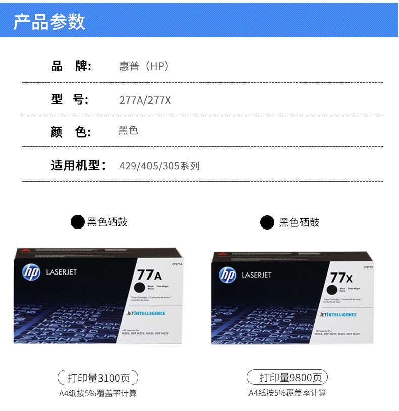 惠普hp cf277X硒鼓适用于305 429fdw 329 429dw 405d DW CF277X黑色大容量(约9800页)
